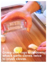 For quick peeling of garlic, use the Garlic Twist to whack unpeeled cloves 2-3 times to loosen the skin. Grip the tip of the skin and slip it off in whole.