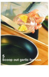 3. For best control, use a table knife or spoon to push the two chunks of neatly gathered minced garlic piles out for use starting from the center of the bowl.